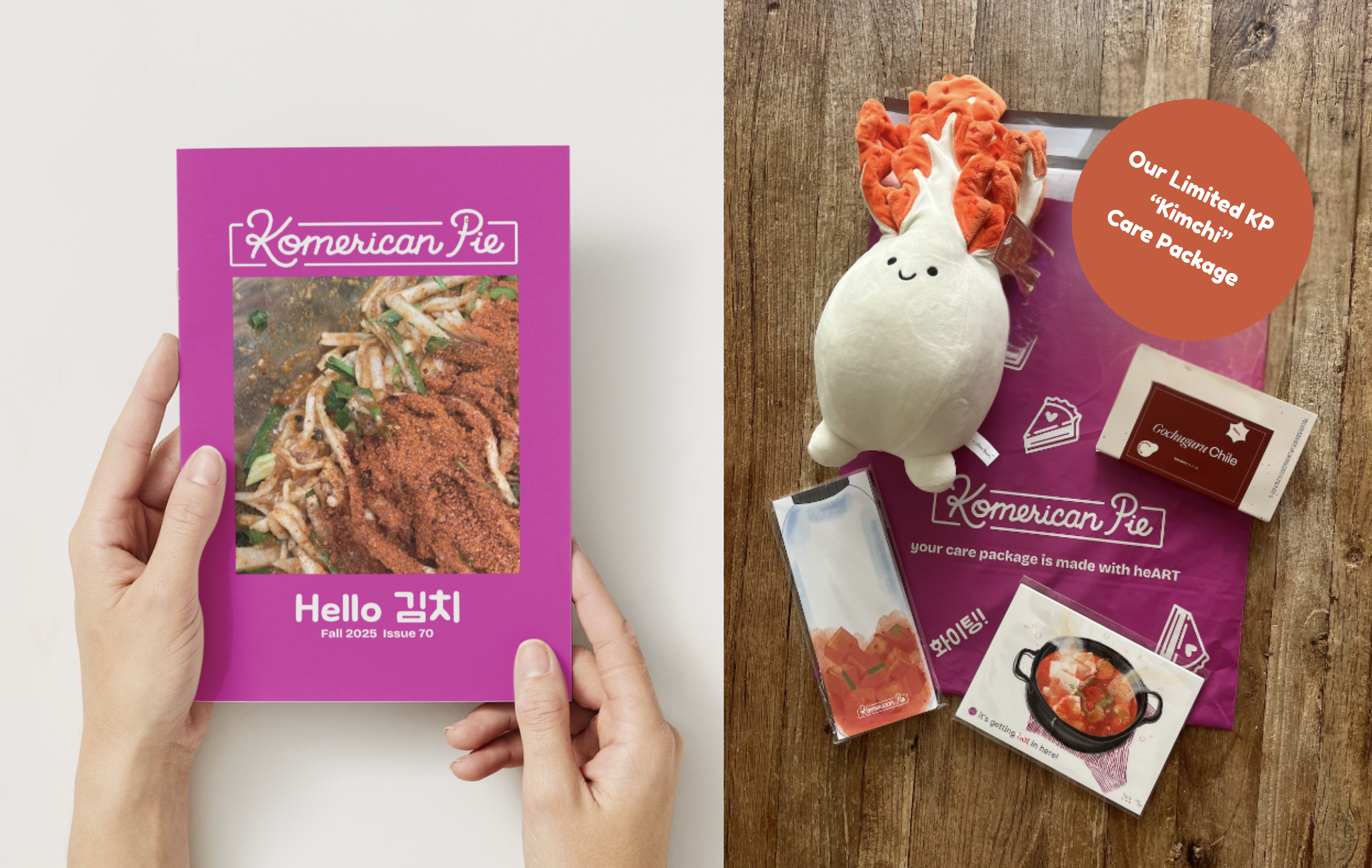 Meet "sold out" Mr. Kimchi from Spark Collection (top left) and Occo's Gochugaru Spice Card (top right). Our custom KP kimchi paper goods and 40-page zine really round out the package!